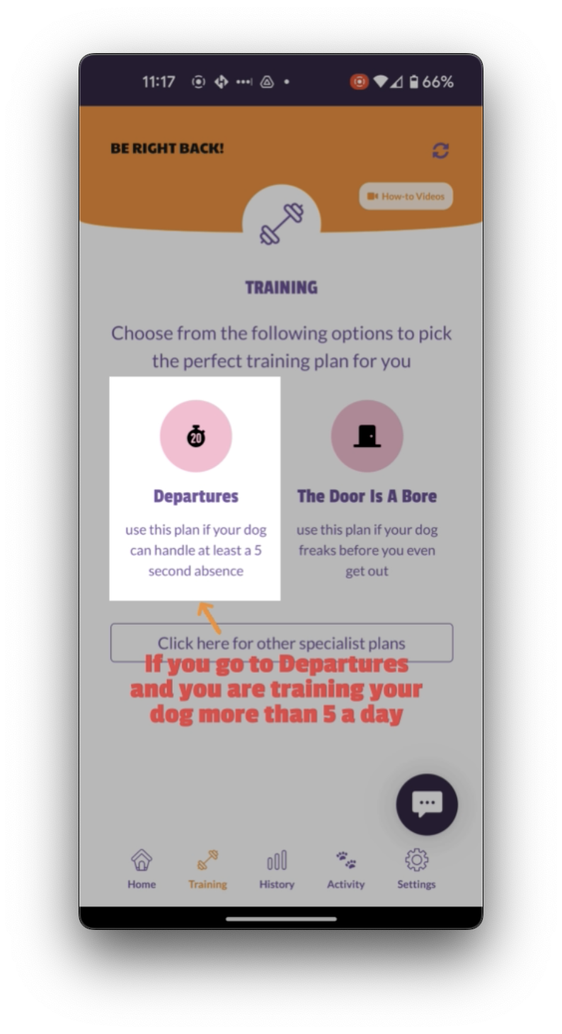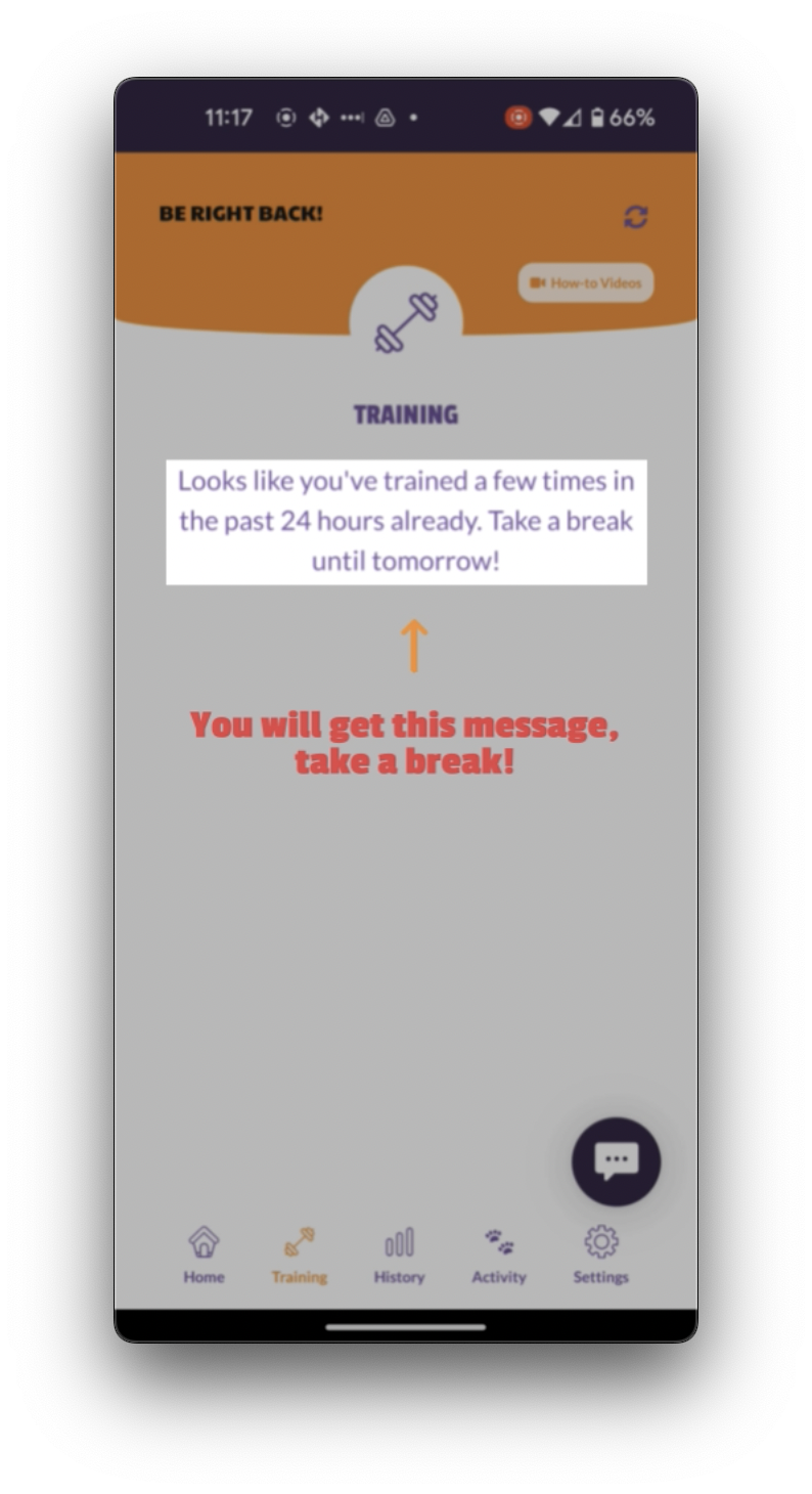 If you try to train more than five times, you'll get this message, and this is your cue to take a break and come back later.